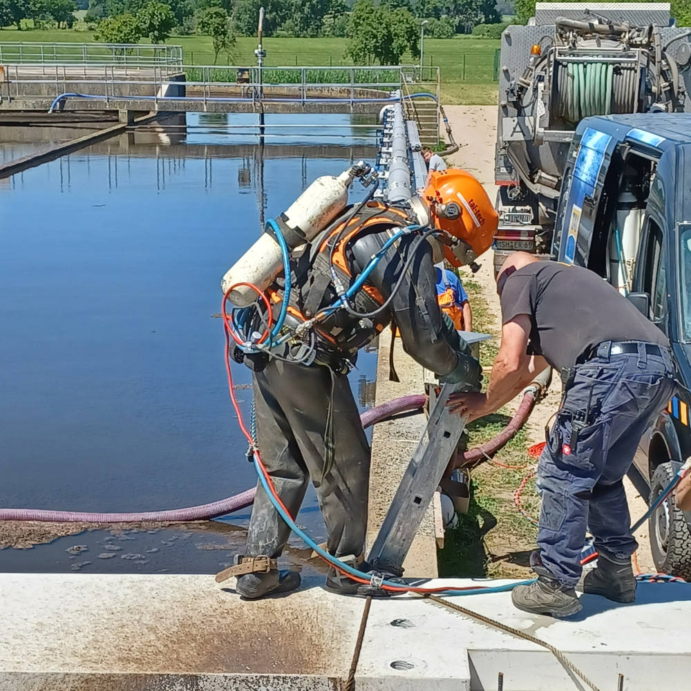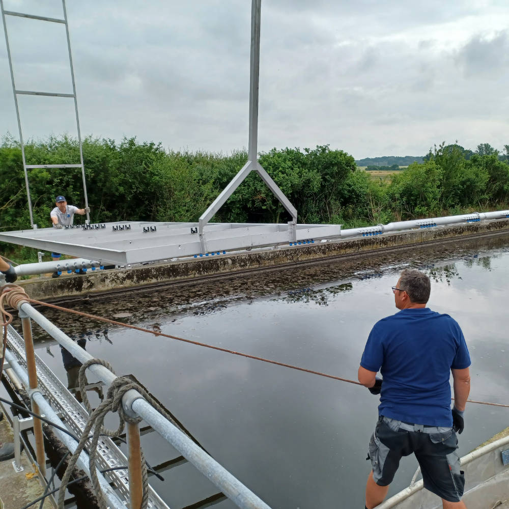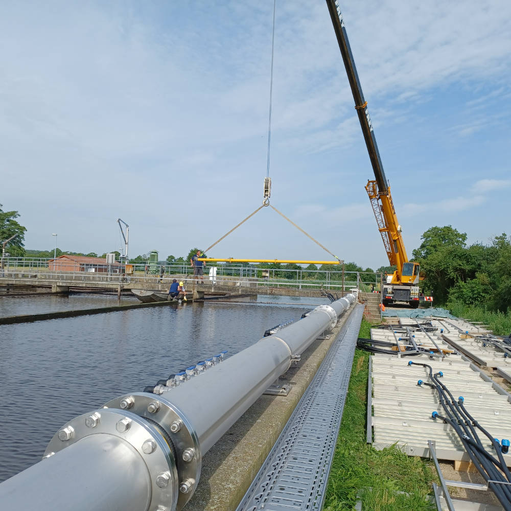 • Installation einer feinblasigen Druckbelüftung im Belebungsbecken